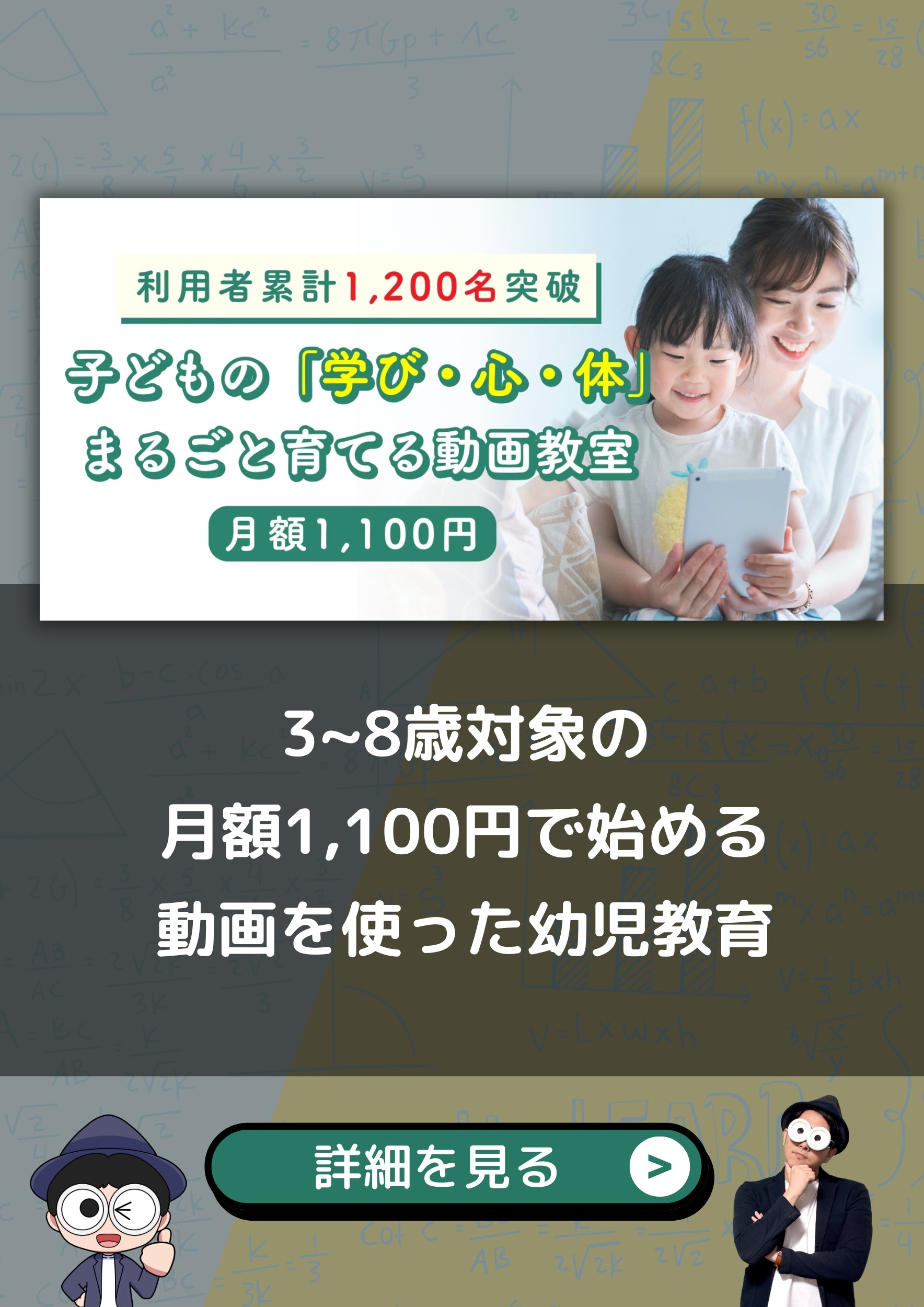 3~8歳対象の、動画を使った教育サービスです。親子で好きな動画を選び見るだけで、①学びの基礎力 ②豊かな心/やり抜く力/成長マインド ③どんな環境でも挑戦できる身体を育んでいきます!いつでもどこでも隙間時間でも使うことができるオンラインの教室です!