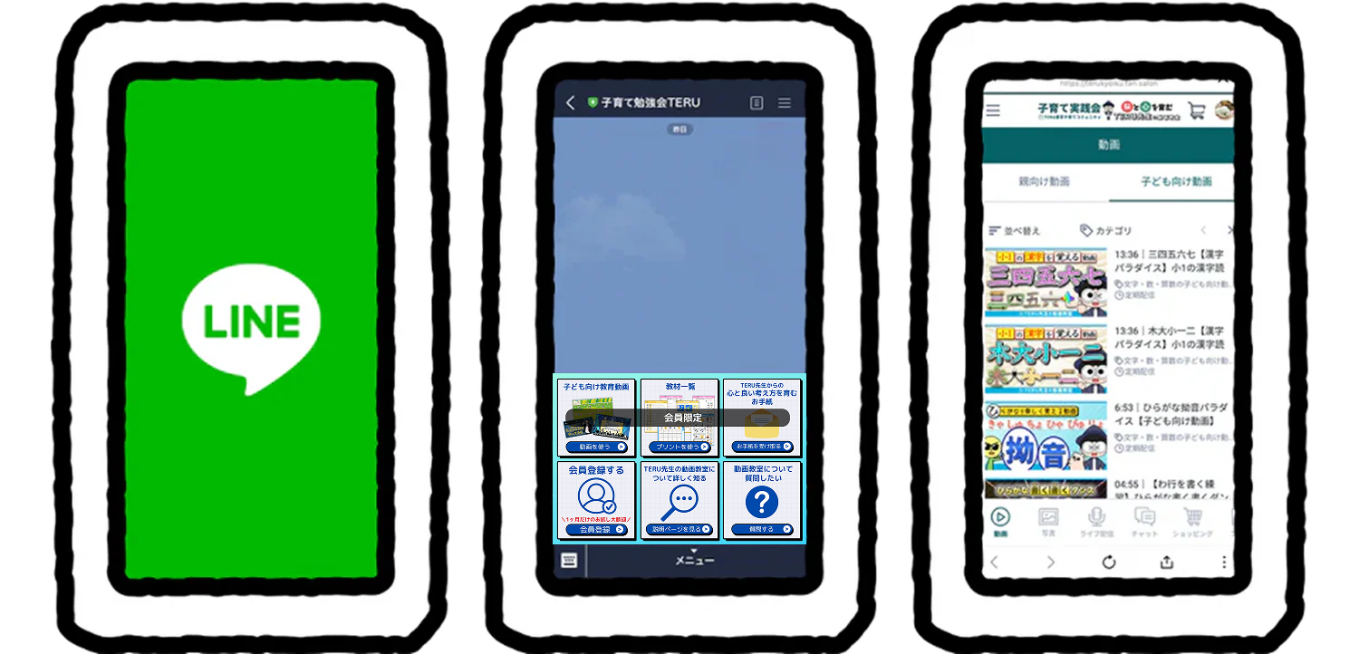 むしろお時間がない方のために作ったのがこの動画教室です。お忙しくお子さんの学びに付き合ってあげるのが難しいとき、この動画で遊ばせてあげることで、親御さんの負担を最小限にしながら学びの時間や機会を提供したいという思いで動画を開発しております。