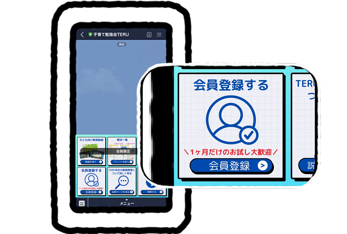 TERU先生の動画教室のLINEにて会員登録を行います。
